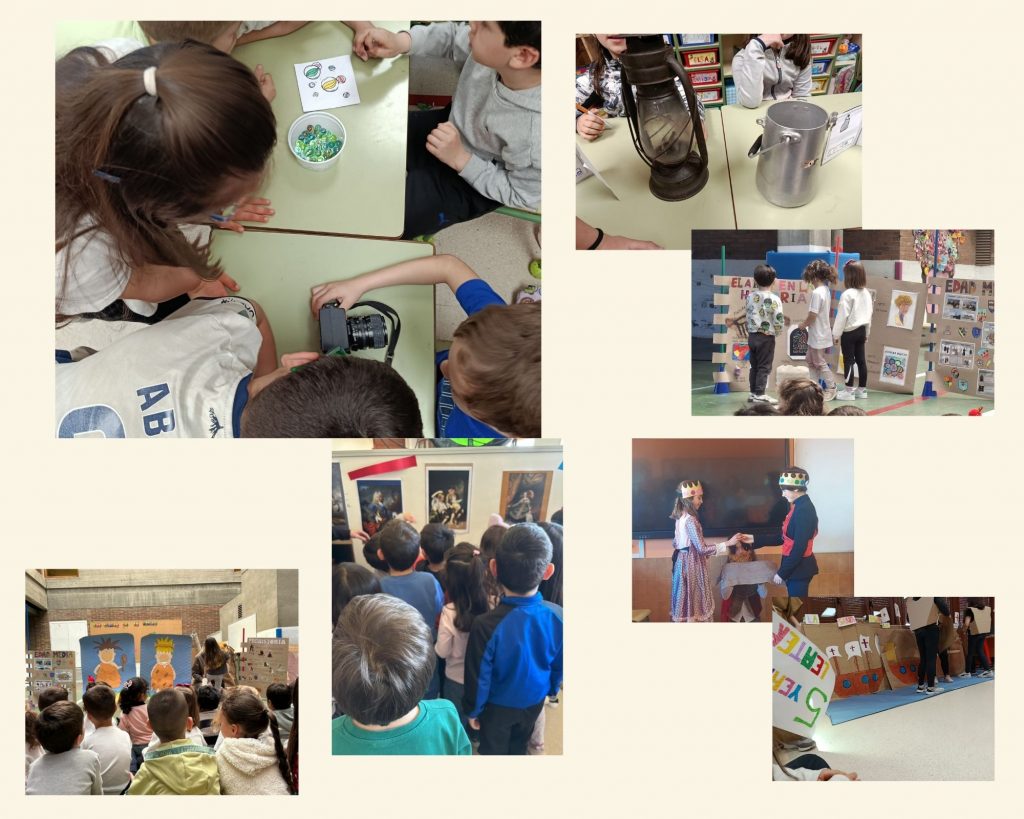 Hoy en el centro hemos celebrado el fin del proyecto común acerca de la Historia. Cada clase ha trabajado una época de la Historia o un aspecto de la misma: acontecimientos históricos más relevantes, personajes, manifestaciones artísticas, etc. Hemos tenido ocasión de realizar talleres, ver representaciones teatrales y explicar o escuchar distintos proyectos.